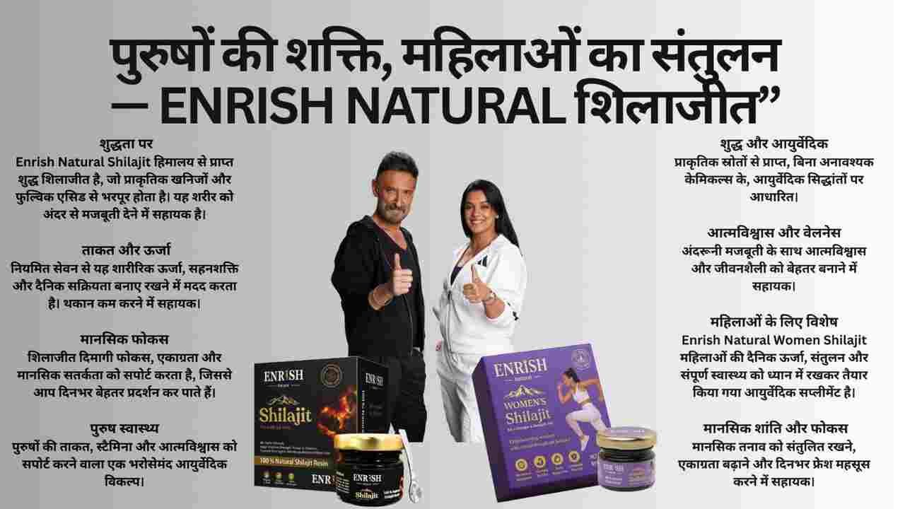 Enrish Natural Shilajit is not just a supplement; it is a conscious wellness choice for both men and women. For women, it supports balance, calmness, and inner glow. For men, it enhances endurance, recovery, and mental focus. Together, it represents trust, purity, and the strength of Himalayan tradition.